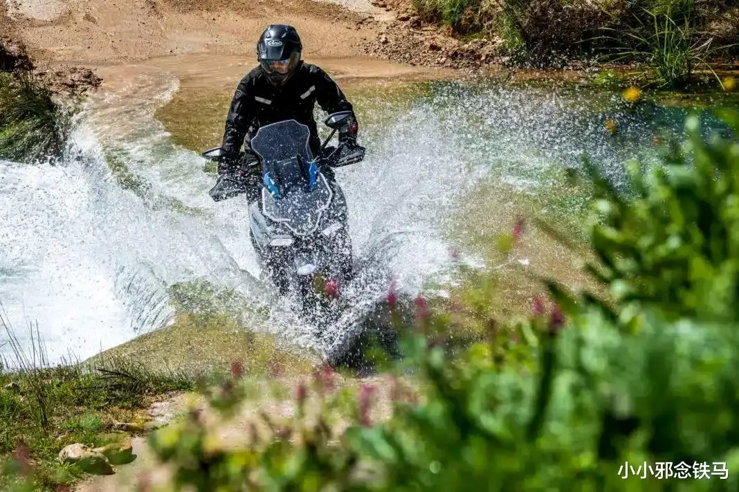电动风挡用左侧车把上的按钮就能轻松操控,反应灵敏,调节精准,效果特别好。侧面扰流板的作用也不容小觑,它极大程度优化了风罩,骑行时,头盔周围没有恼人的乱流,肩膀也不会被风吹得晃来晃去,整个骑行体验安静又平稳。对一款主打长途骑行的探险摩托车而言,这样出色的空气动力学设计,无疑是一大显著优势 。