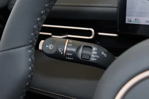 车身侧面的线条流畅舒展,18英寸半封闭式轮毂采用星旋造型,搭配镂空辐条,不仅降低了风阻,还增添了几分梦幻感。半隐藏式门把手与车身融为一体,既提升了美观度,又进一步优化了风阻表现——整车风阻系数低至0.228Cd。这一数据意味着车辆行驶时受到的空气阻力更小,有助于降低电耗、延长续航,对日常使用来说十分实用。 细节处的设计同样体现了对实用性的关注。四门均采用双层夹胶工艺挡风玻璃,不仅能有效隔绝外界噪音,营造安静的车内环境,还能阻挡99%的紫外线,夏季出行时不必担心晒伤。外后视镜支持加热、电动折叠和自动防眩目功能,在冬季雨雾天气里,能始终保持镜面清晰,保障行车视野;前后排车窗的一键升降及防夹手功能,则为老人和儿童的安全增添了一份保障。首