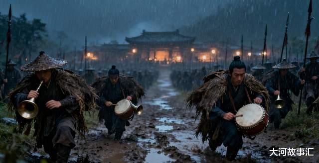 第三日夜,大雨倾盆。牛孝节选五千精兵,每人携带鼓角,趁夜潜出大营,绕至齐军后方。