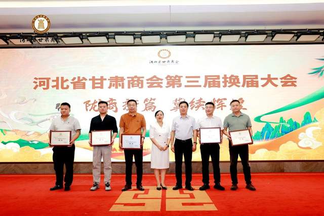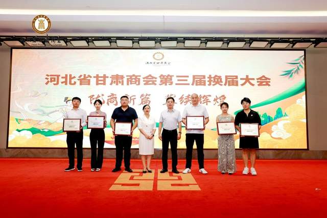 会上还为商会副会长、副秘书长、理事等颁发牌匾。潘平、王烨、漆亮、李建国、陈勇秀、贾军强当选为第三届河北省甘肃商会副会长。整个授牌仪式井然有序,展现了商会组织建设的规范性和新一届领导班子的凝聚力。