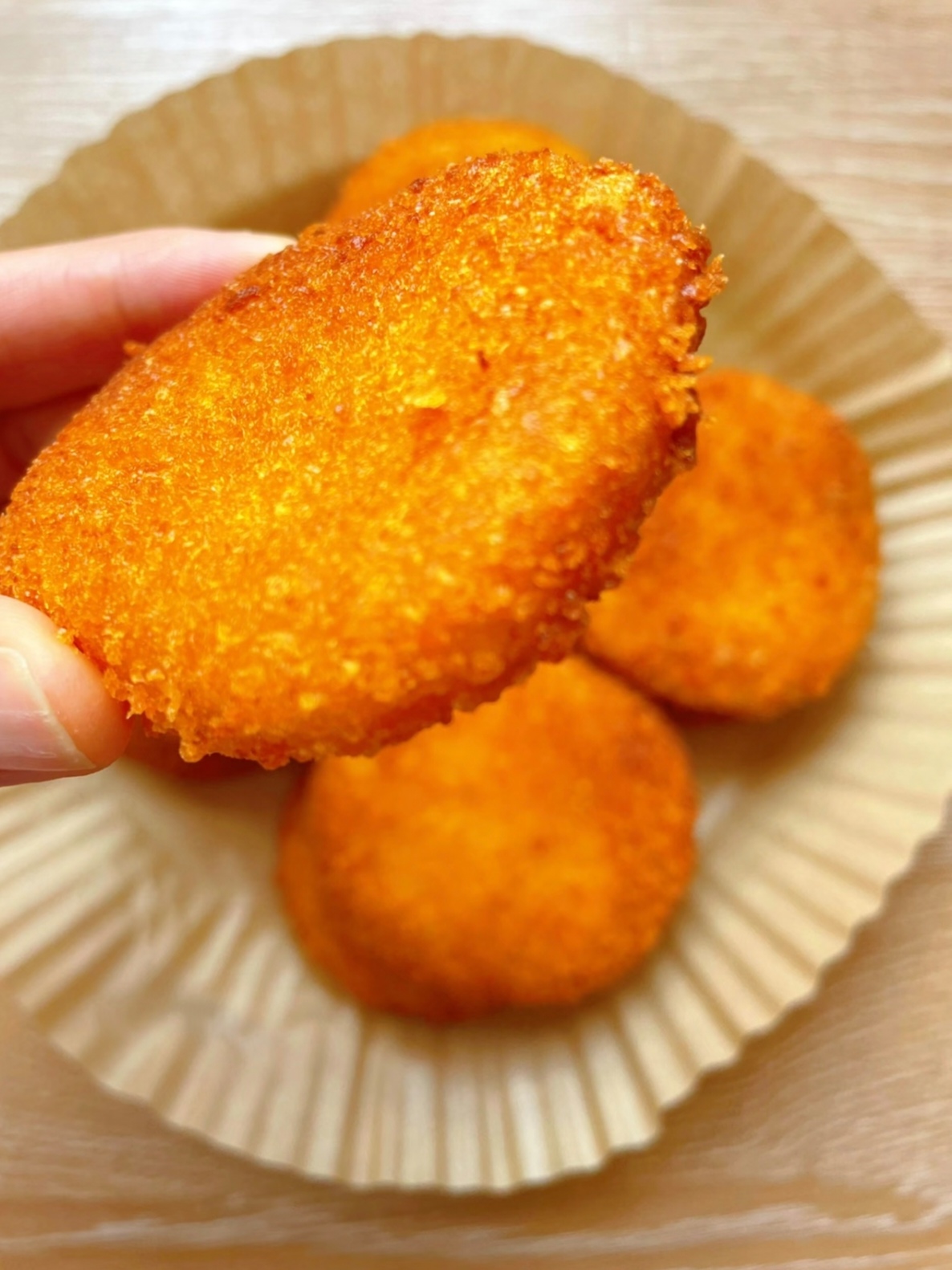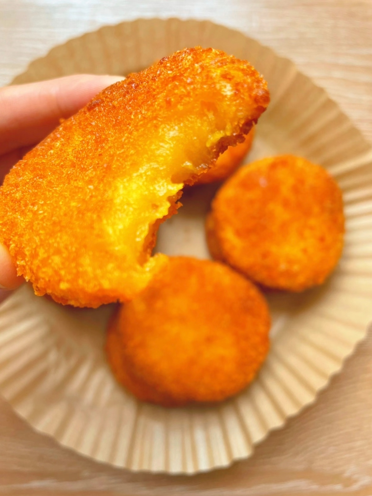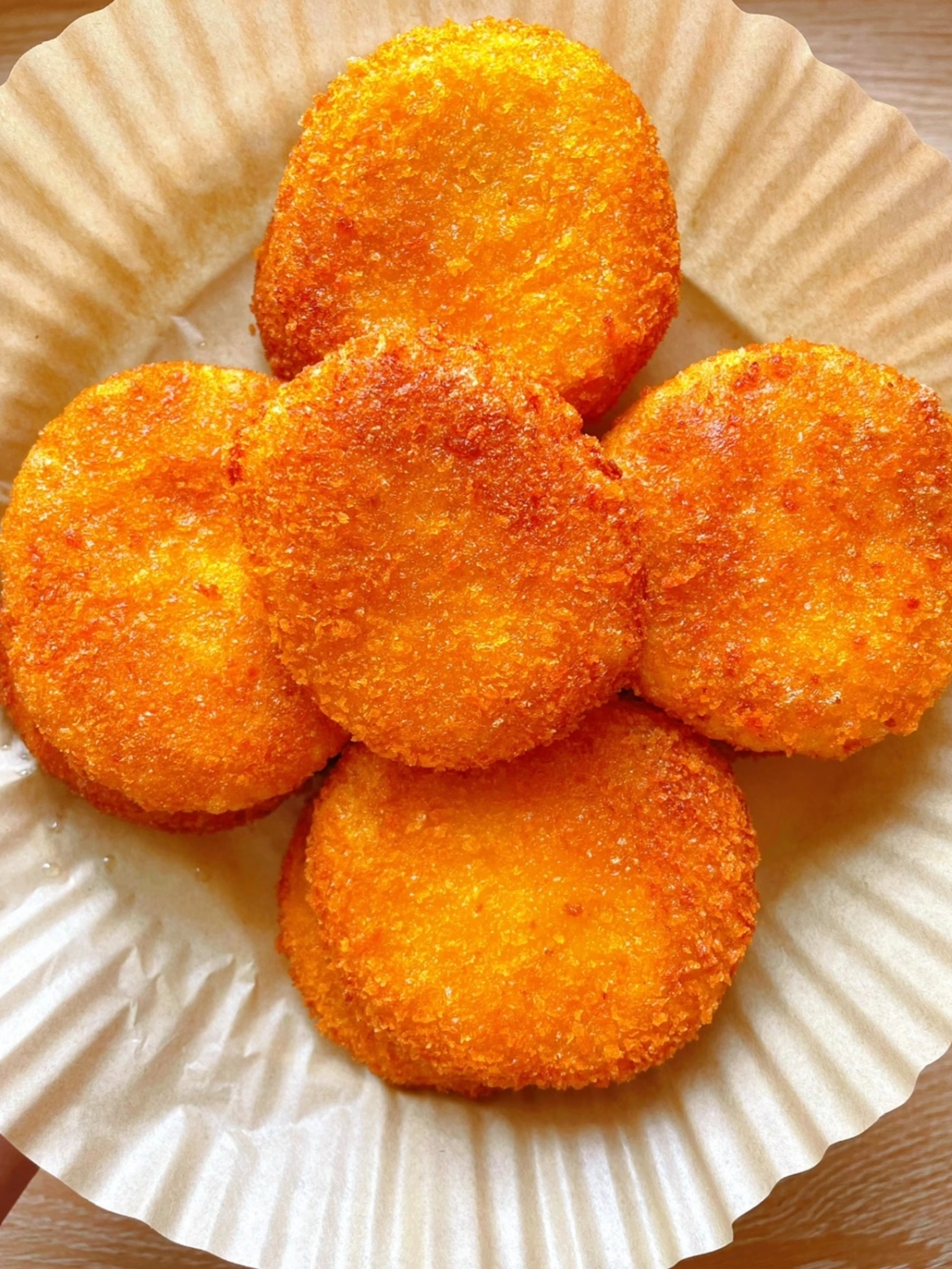 一盘金黄诱人、香气扑鼻的南瓜饼就新鲜出炉了。