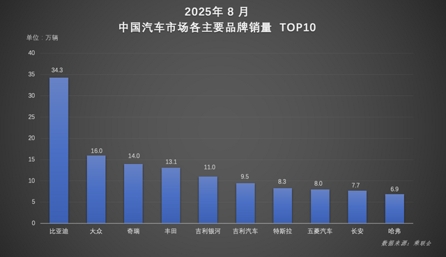比亚迪的主力军——“王朝+海洋”系列,1-8月累计销量高达263万辆。光是8月就卖出34.3万辆,成为中国市场最受欢迎的单一品牌,没有之一。网友调侃:“这哪是领先,这是断层出道!”
