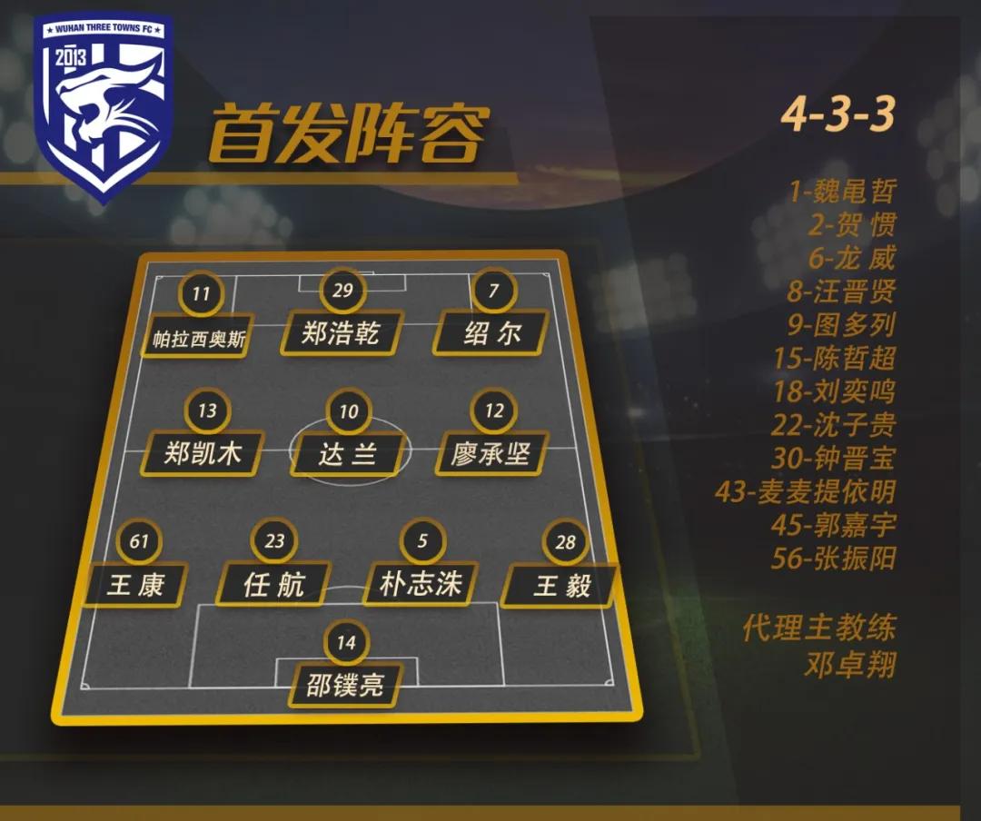 本场比赛,武汉三镇队派出了 4 名外援首发的阵容,球队最佳射手图多列继续替补待命,武汉三镇队代理主教练邓卓翔为球队进攻留了后手。