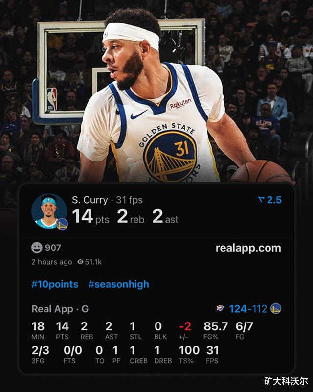 对阵雷霆,库里因伤继续休战,弟弟塞斯-库里迎来勇士首战,在哥哥战斗的地方,小库里打得棒极了,虽是首秀,久疏战阵,但丝毫没有老化生锈的迹象。