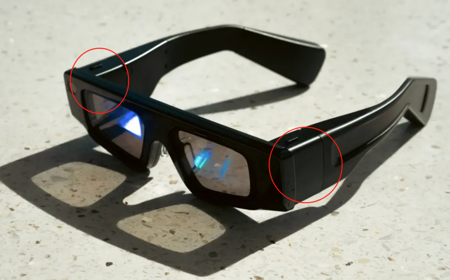 眼镜中间向后突出问题:这是一个结构性问题,我们知道,一拖二方案仅使用一个光机,且需要通过特殊的光学结构将光线分别导向左右眼的波导,光机及配套的光学元件往往需要集中布置在眼镜的中间位置。从空间布局来看,单个光机本身具有一定的体积的,再加上用于光线分光、转向的棱镜、光栅等组件,这些部件叠加在一起,必然会占据眼镜中间区域的不少空间。