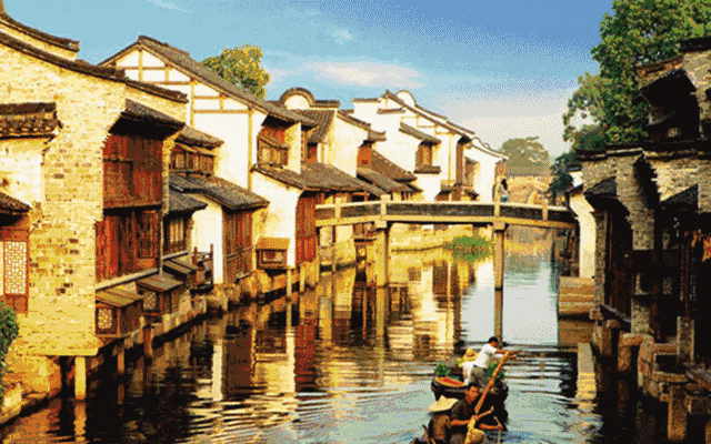 午后的阳光下,木渎古镇的河道上,小船悠悠地穿梭在桥洞之间,船夫们唱着悠扬的江南小调,船上的游客们则沉浸在这如诗如画的景致中。古镇的茶馆里,人们围坐在一起,品着香茗,聊着家常,享受着这份悠闲。