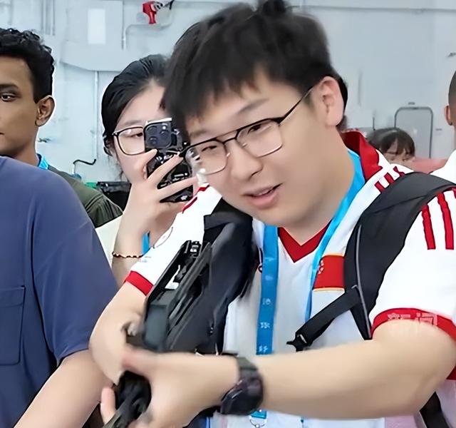 在参观之外,一些男同学还在这里见到男同志梦寐以求的自动步枪,一名学生拿着步枪,眼里的喜爱已经溢了出来。
