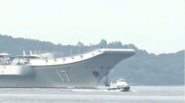 6月29号,山东舰从其母港三亚榆林湾军港驶出,在7月3日抵达香港的维多利亚港湾,港府以最高规格的礼仪表示迎接,用消防船喷射出壮观的拱形水门以示敬意。