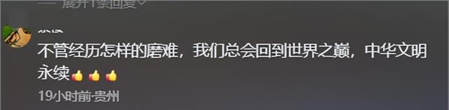 一位贵州的网友看到这些令人震撼的国之重器深有感触,他说:“不管经历怎样的磨难,我们总会回到世界之巅,中华文明永续”。