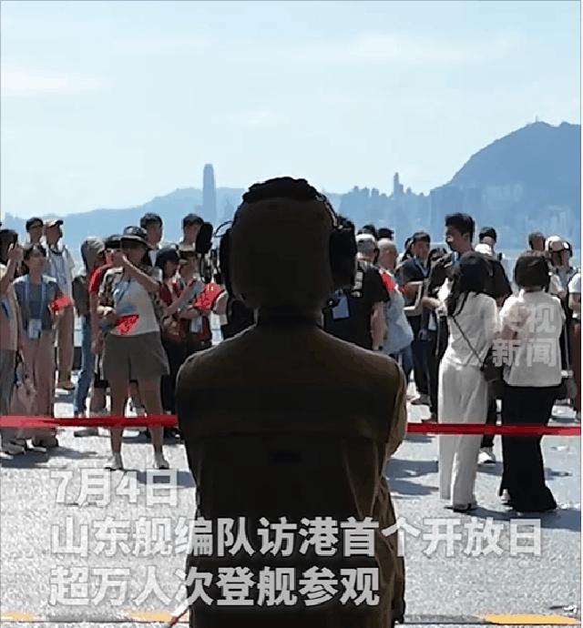 第一批登上山东舰的香港老师和学生在接受采访时难掩激动的心情,香港作为鸦片战争的亲历者,经历了百年的殖民历史,他们对于祖国的强大有更深的感触,如今看到中国的航母停靠香港,内心的激动和自豪已经不是语言可以形容。