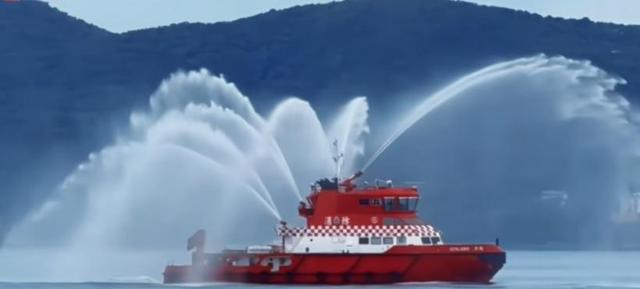 港府以最高规格的礼仪表示迎接,用消防船喷射出壮观的拱形水门以示敬意