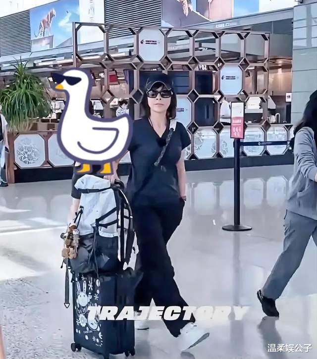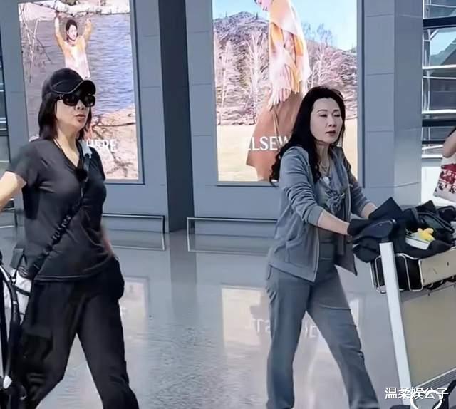 和大三岁的何赛飞同行,港星的精神面貌果然与众不同,她肩背挺拔,一手插兜,一手推行李,轻轻松松,光看走路姿态,刘嘉玲看上去就三十多岁,很年轻态!