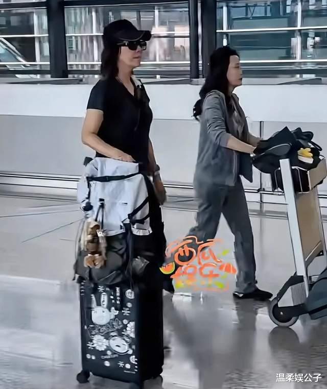 这一场,来的除了这两位外,还有一位港星,就是张柏芝,45岁的她,大包小包全部背在身上,手里还推着两个行李,一个人拿这么多东西一点也不狼狈,估计平时没少抱孩子,锻炼出来的肌肉线条很明显。