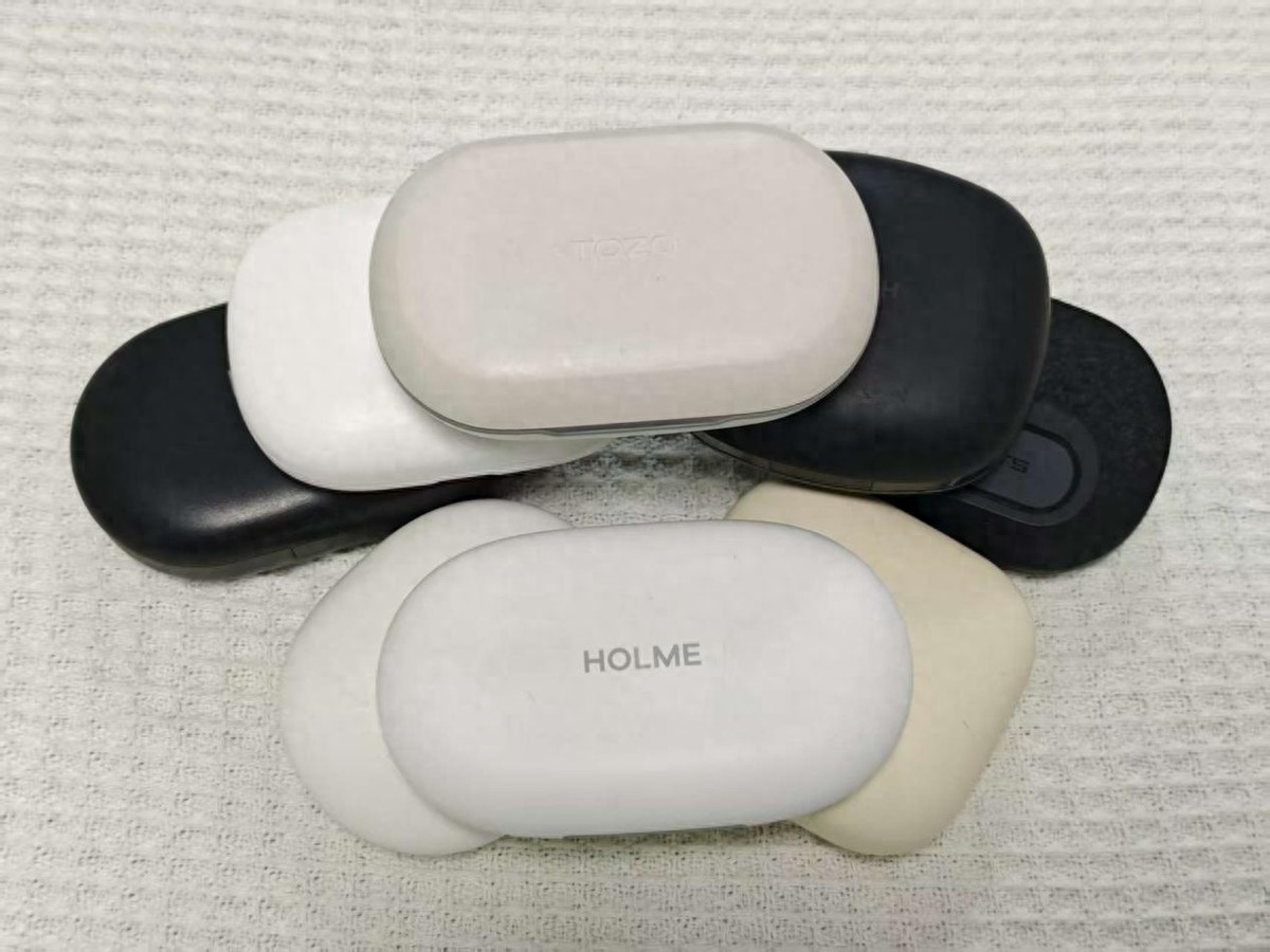 这款耳机采用了亲肤液态硅胶的材质,整体顺滑柔软,搭配上流线型工学设计,我佩戴起来的话,发声孔能刚好对准耳道,音质会更好一点,而且就算戴久了耳朵也没有不适感,再加上这耳机搭载了虹觅自研的防漏音模式,开启后可以发出反向声波,抵消泄露的声音,加强了防漏音效果;不光如此,这耳机还采用了创新式的触片式充电,面对点充电,让充电又快又稳;