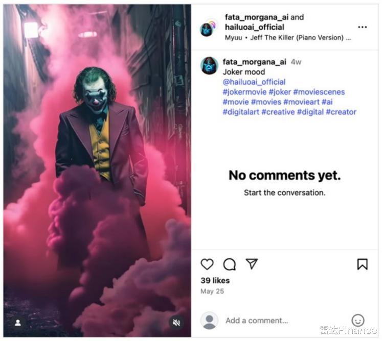 涉嫌侵权华纳旗下小丑IP的“海螺AI”官方广告(发布于Instagram)