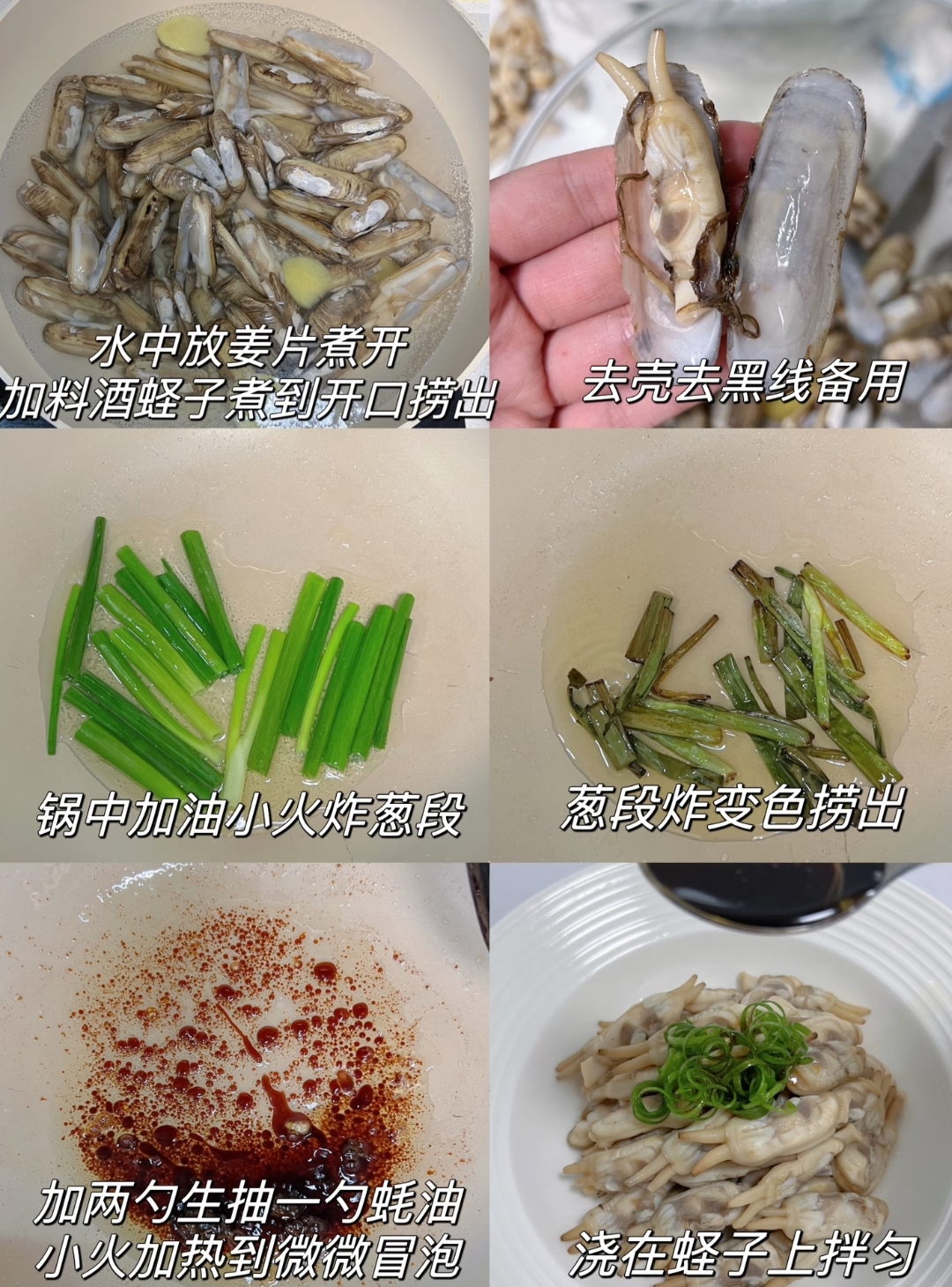 这道菜适合小白,不需要技术,味道却很绝,蛏子搭配葱油的香味,鲜美又香!超赞!一上桌就秒光!