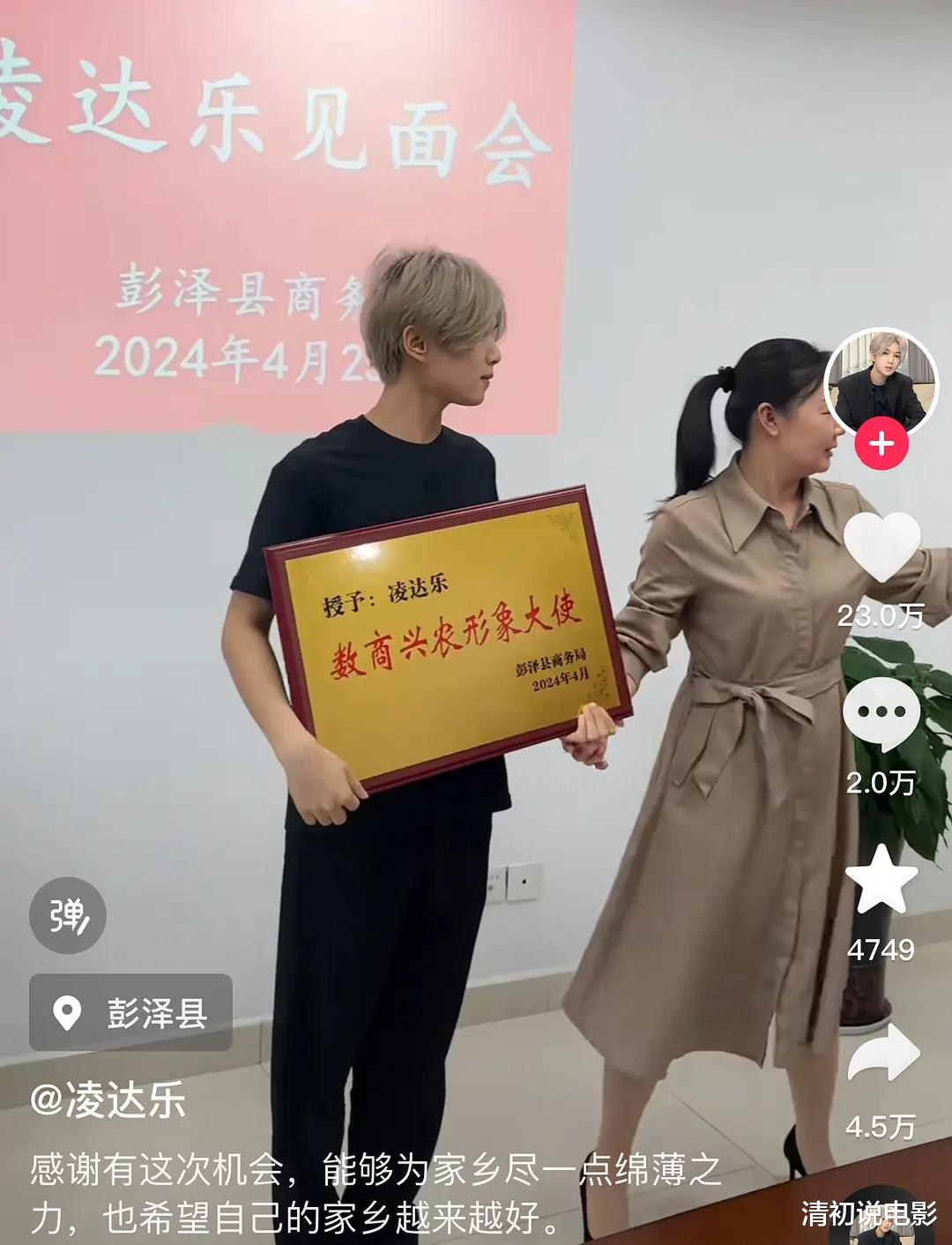 凌达乐在成功转型后,还多次在直播间表达对鹿晗的感谢。