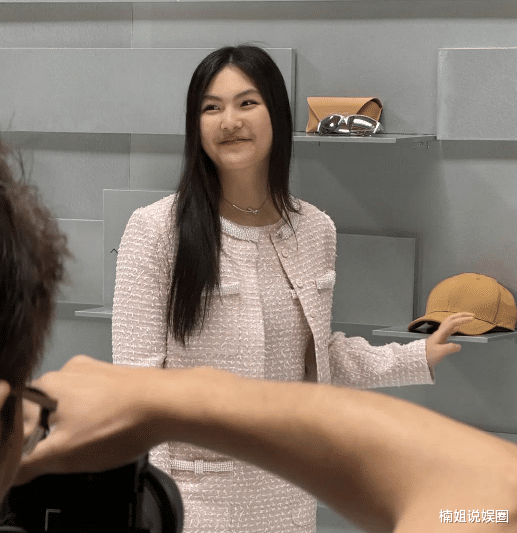 现场生图中,她身着香奈儿早春套装,脸颊肉感明显,下颌线消失的侧脸轮廓与父亲王岳伦如同复刻。