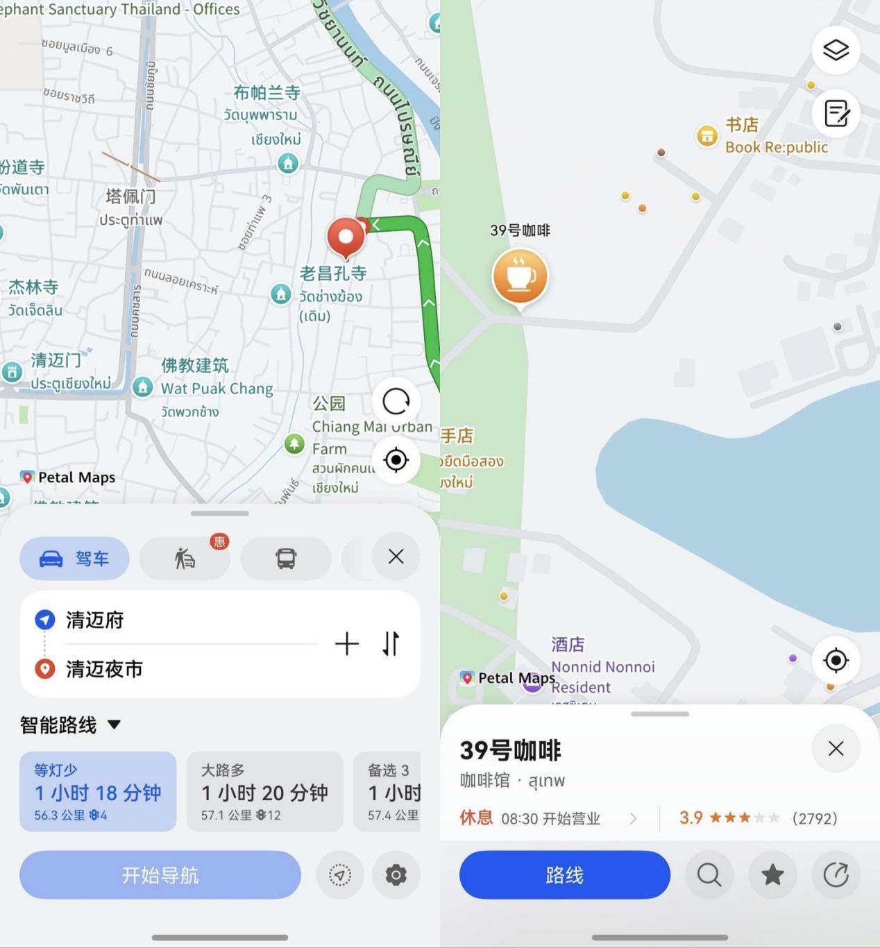 到了泰国才发现,很多小众景点路牌只有泰文,连比划带猜也不管用。打开花瓣地图的瞬间,我就松了口气——全中文界面,连语音提醒都是中文的,“前方500米左转,进入小巷后直行”,异国他乡听到乡音也太幸福了。去清迈古城找一家特色咖啡馆,导航精准得没话说,连小巷里的岔路都没指错过,完全不漂移。