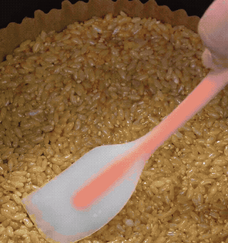 再用刮刀把米饭压平,越薄越好,薄到能看到锅底那种最好。