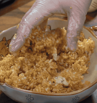 抓得越碎越好,搅拌到米粒粒粒分明。