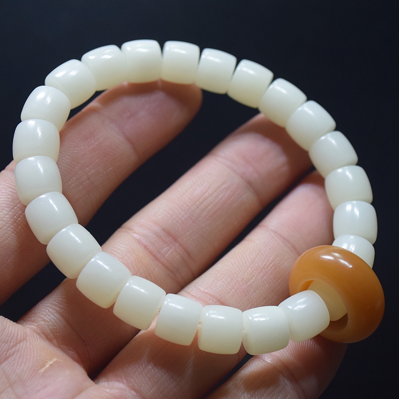 星月菩提堪称“文玩入门首选”,价格亲民(百元内可入入门款),珠子呈奶白色,带有黑色“星点”,盘玩后会逐渐变黄、开片,成就感十足。它的颜色百搭,无论是休闲装还是正装,都能轻松适配,且不怕轻微磕碰,新手无需担心“盘坏”。
