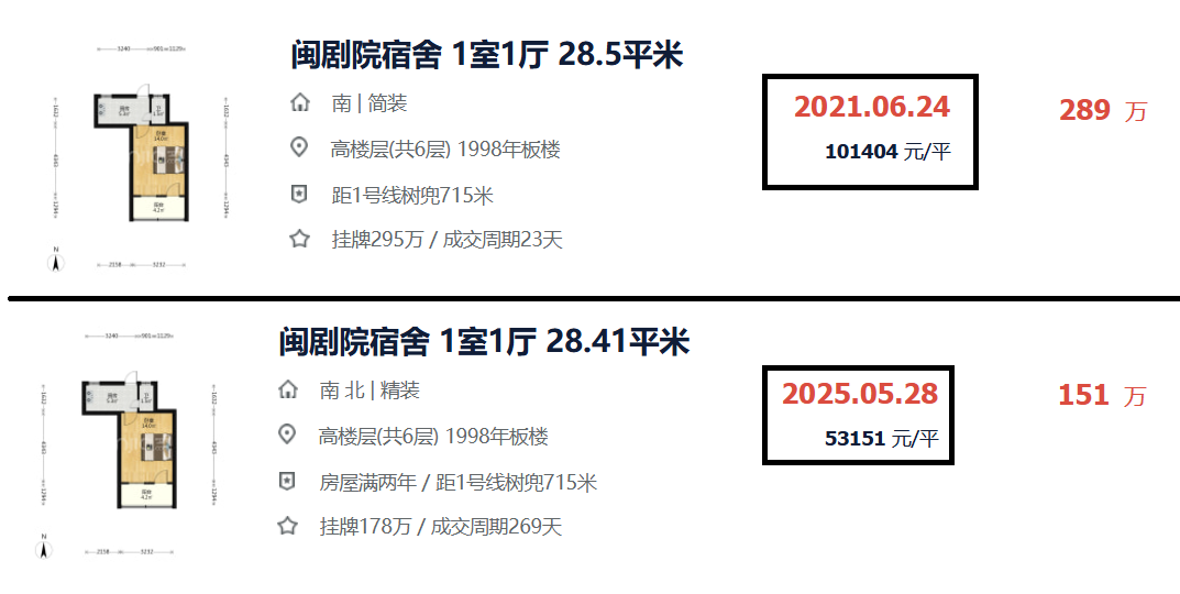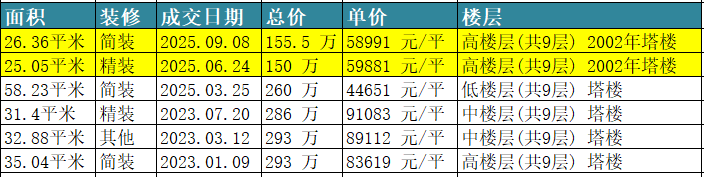 2025年,高层精装28平,成交单价5.3W,总价151W