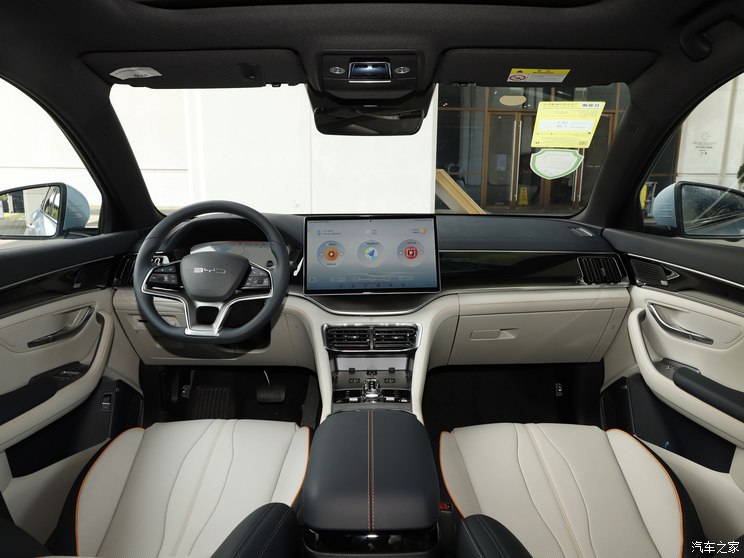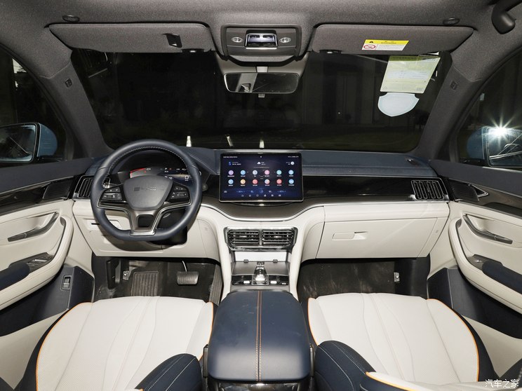 内饰方面,新车采用经典的家族式设计,一体式双拼色座椅配合三辐式多功能方向盘、可旋转悬浮式中控屏,让这款车更具年轻气息。同时,该车配备水晶电子挡杆,质感突出。配置方面,该车将配备15.6英寸自适应旋转悬浮PAD、DiLink智能网联系统、VTOL移动电站等。
