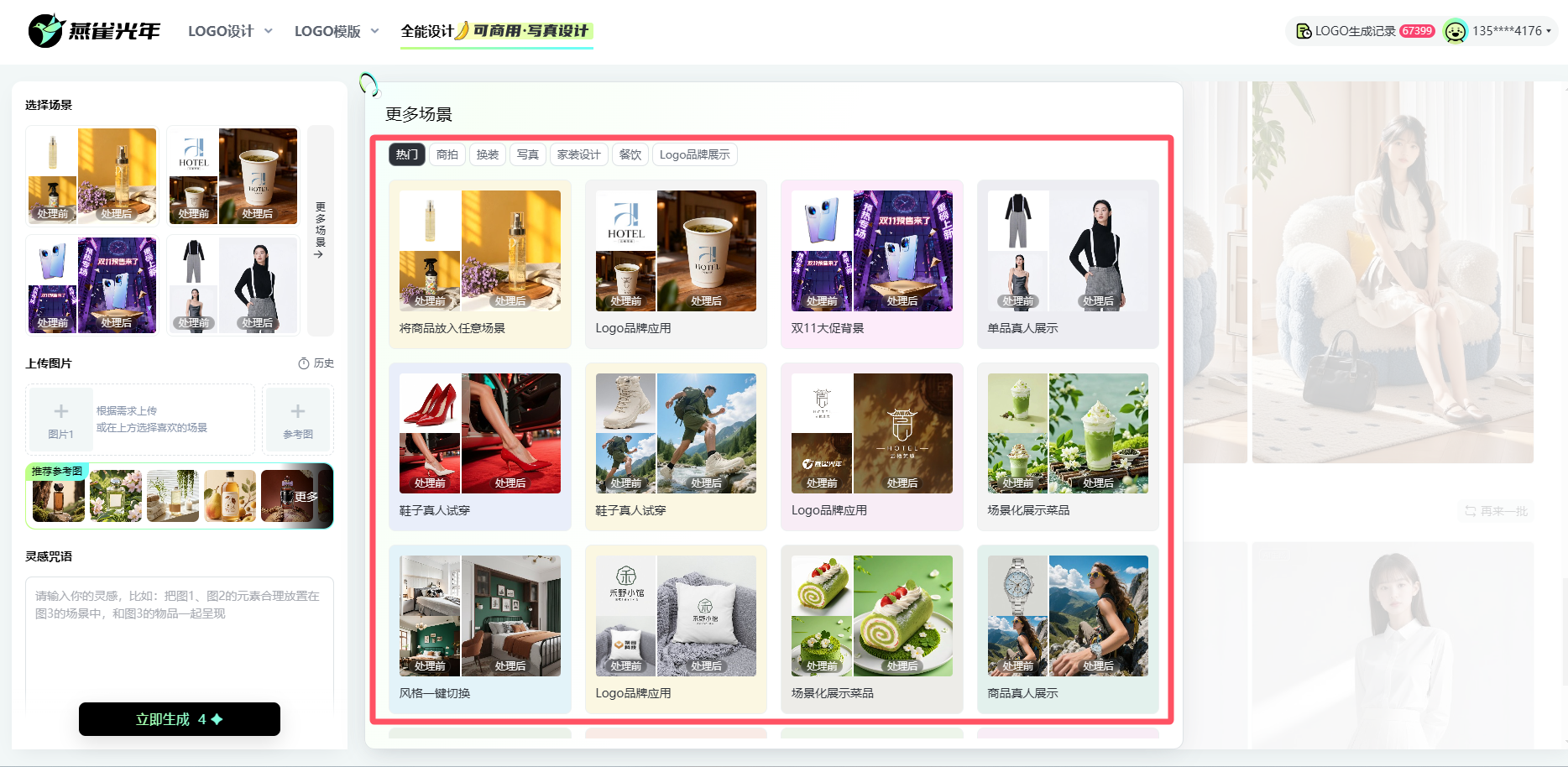 三、⭐8大热门电商AI模特图生成工具对比工具名称使用场景特点星级推荐燕雀光年AI全能设计电商商品图、模特展示、换装、家居设计等支持商品真人展示、多场景融合,3步生成可商用实拍图,保留商品细节,操作简单★★★★★PhotoMagic服装、鞋靴、箱包类电商垂直服饰领域CLIP模型,高精度还原面料纹理,支持国模转外模、奇幻场景生成★★★★★FASHN.ai服装电商中的虚拟试穿,可生成模特试穿效果图提供先进的虚拟试穿解决方案,支持多品类服装适配★★★☆☆E 象电商商品图、真人模特展示一键生成多套真人模特图,支持文字描述场景,适配跨境本土化营销★★★★★千面AI模特服装电商、跨境营销一键换脸/换装/换景,生成大牌同款模特图,支持特型模特定制★★★★★光子AI全品类电商(服装、配饰、家居等)支持AI换模特、换装、360°展示,生成4K超清图,适配TikTok/Shopify等平台★★★★★PhotoStudio AI服装、商品展示虹软视觉大模型驱动,提供多风格模特库和场景模板,一键生成专业摄影效果★★★★☆摹小仙AI模特工具电商商品试衣换装,生成AI模特图和人台图。支持一键试装和虚拟模特切换,提供假发穿戴效果查看等特色功能。★★★★☆✅ 1、 燕雀光年AI全能设计燕雀光年AI全能设计支持AI模特图生成,AI一键换装,产品图生成、电商实拍图生成。
