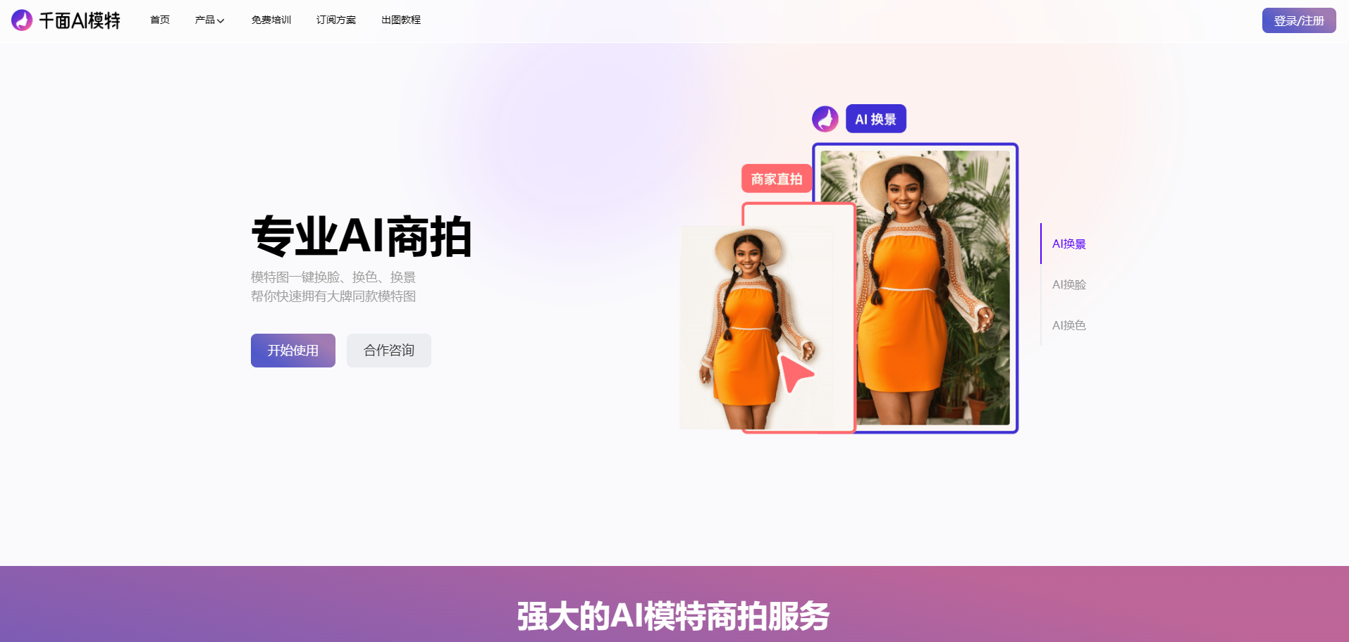 虚拟模特定制服务:根据品牌需求训练专属AI模特,相似度达85%以上,适配服饰、鞋包等商品场景 。