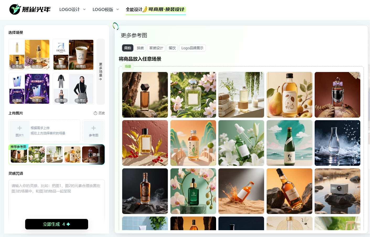 复刻大牌风格:上传大牌广告图,快速生成同等质感和风格的商品图。
