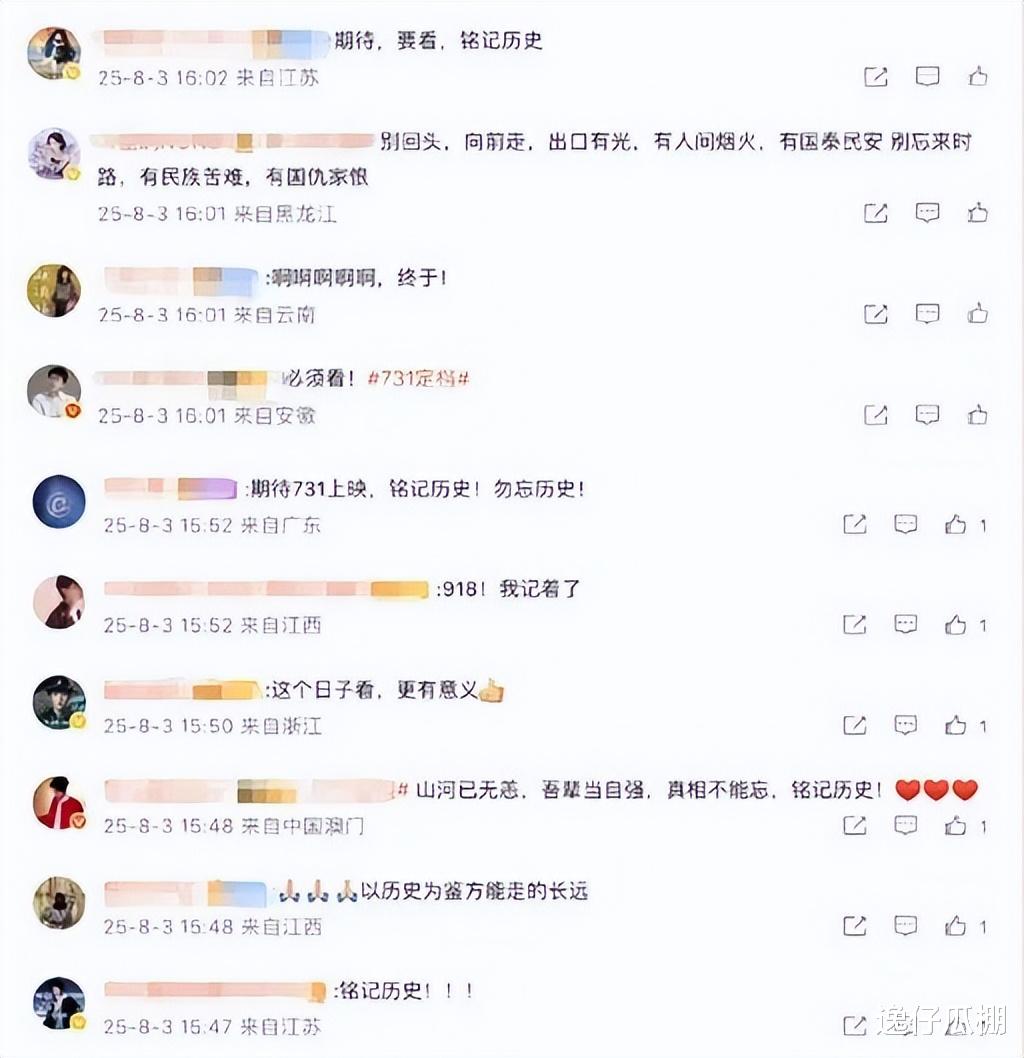 广大观众也是秒懂了《731》定档918的意义,更是对电影上映无限期待,目前,猫眼的想看人数已经突破了390万,远远超过了这几年所有的爆款电影。很多观众都表示一定会去看,也希望电影能够最大的还原日本731部队犯下的恶行,尽量少删减。当然,也有一些观众对《731》不能在暑期档上映有些遗憾,担心会失去一些青少年观众,在票房上失去一些优势。