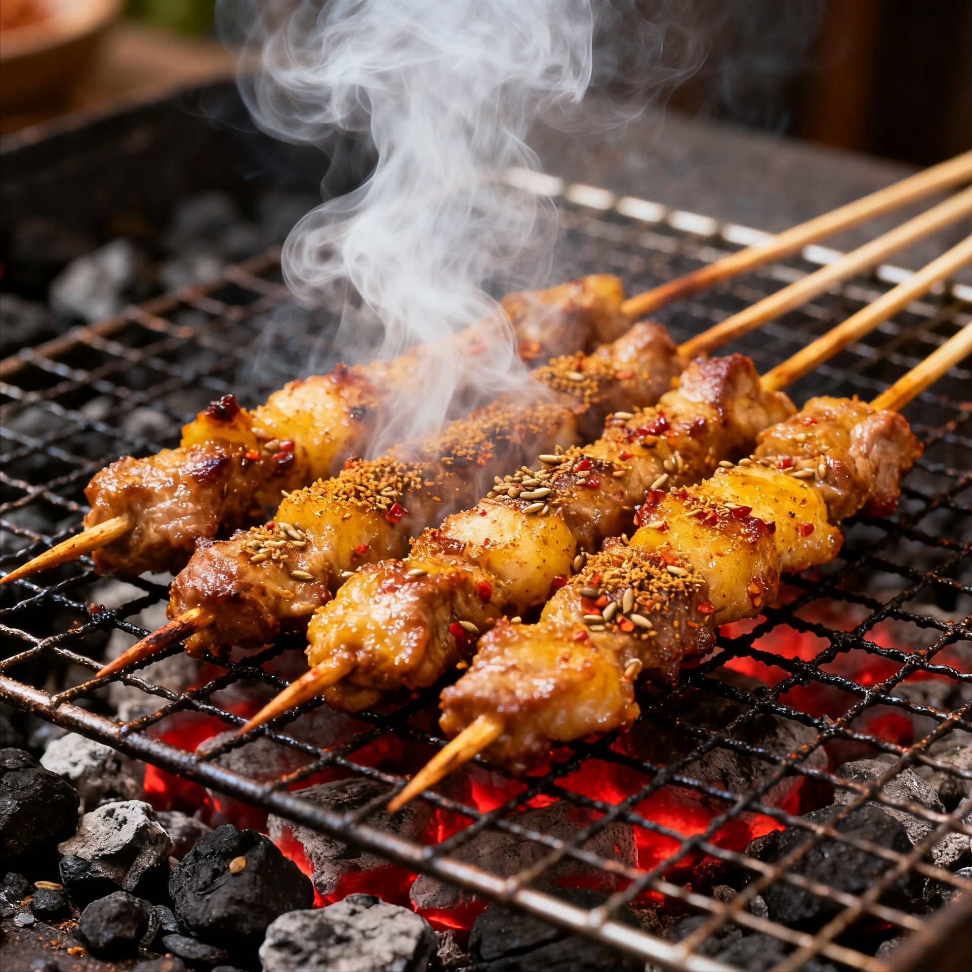暮色刚漫过街角,巷口的羊肉摊就支棱起了架势。铁桶改造成的炉子裹着层厚厚的黑痂,炭火在里面 “噼啪” 作响,把挂在铁架上的羊腿烤得油光锃亮。摊主老周戴着洗得发白的套袖,手里的铁签子转得飞快,羊肉表面的油脂滴落在炭火上,瞬间腾起带着焦香的白烟,顺着晚风飘出半条街。路过的人总忍不住放慢脚步,有人干脆停在摊前:“老周,来两串肥瘦相间的,多撒点孜然!”