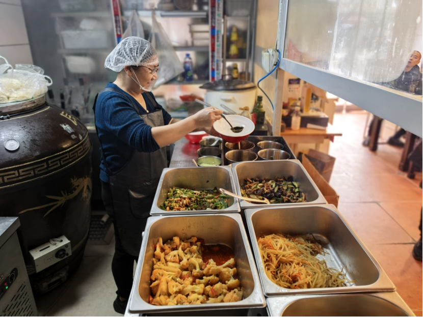 食堂内排起了大队,明档窗口里涵盖了荤素搭配的家常炒菜,小火慢炖的各类砂锅,筋道爽滑、可随心搭配浇头的面条,还根据节气准备了不同口味的手工饺子,南北风味齐聚,满足不同老年人的饮食偏好。