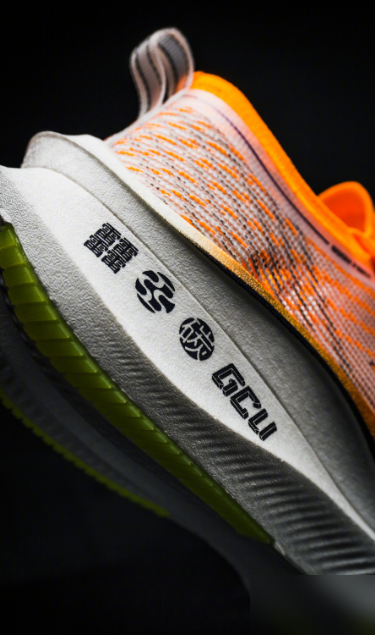 更讨巧的是鞋侧“䨻+碳+弜+䨻+GCR”的立体字样,黑色字体与亮色鞋面形成反差,既点明科技配置,又添了份潮感。后提拉带的灰橘拼接,连系鞋带时的小细节都考虑到了,看得出设计师在“好看”和“实用”间找了平衡。