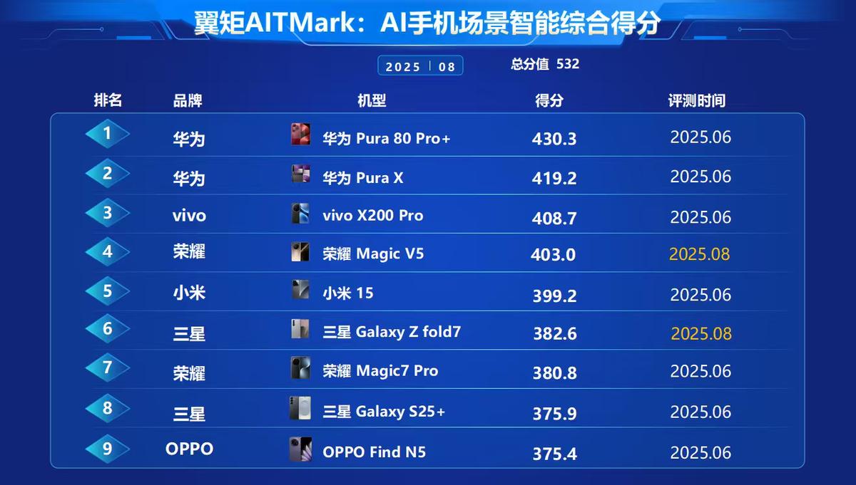 随着AI技术的加速普及,越来越多的消费者开始使用具备AI能力的智能手机,在众多品牌竞相布局AI的背景下,哪些产品与智能体表现更为出色,成为行业和用户共同关注的焦点。在8月15日举办的2025中国电信终端评测合作论坛上,中国电信发布了包括终端测试质量报告、终端洞察报告、翼矩AITMark、AI终端测试系统等终端评测最新成果。根据报告显示,在一众的手机产品中,华为Pura 80 Pro+一骑绝尘,斩获AI、通信等多项榜单的首位。