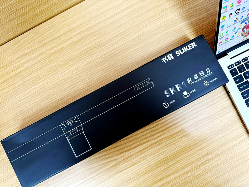 书客SKR1屏幕挂灯的外包装采用了简约的黑色礼盒设计,够大气,搭配白色线条勾勒的灯体整体轮廓,高级感满满。