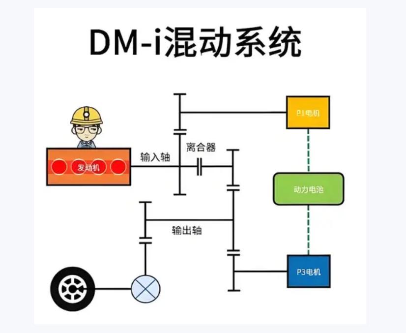 为啥它比丰田还省油?我给你用大白话拆开说说这套混动的门道。它用的是P1+P3 双电机的路子:P1电机主要就是发电,起步的时候顺便搭把手,P3电机直接管着驱动车轮,再配上专门为混动设计的发动机,凑成一套三擎动力。跟市面上那些单电机混动、固定挡位混动不一样,它能应对的路况更多,动力切换和油耗控制都更精准。
