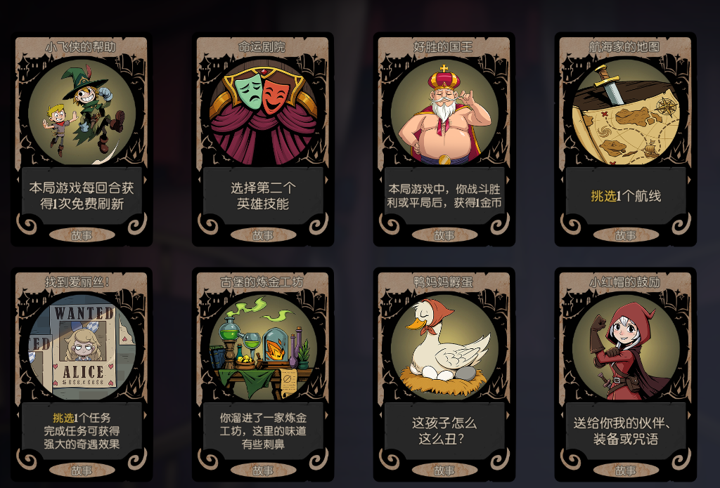 在S9赛季里,我们能够解锁各种特殊的故事,它们帮助我们获取一些卡牌、buff、增益、金币,相对其它赛季这个赛季会更加的平衡,也不会要求你必须绑定某种流派,而童话作家的技能给予更多的童话篇章,更快变奏,让自己的体系大成,可以说几乎所有的故事篇章都是正向收益,正是因为这个缘故,百搭成为了其赖以生存的法宝。