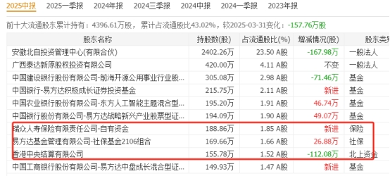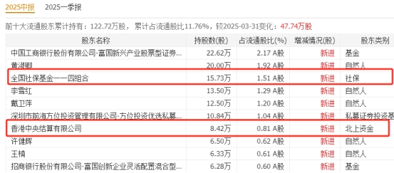 机构动态:前十大流通股东中,全国社保基金114组合新进15万股,北上资金新进8万股。