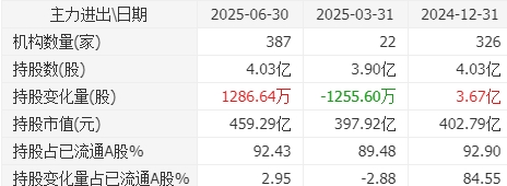 机构动态:二季度持股机构数量达387家,较一季度增加365家,合计持股4.03亿股,加仓1286万股;持股占已流通A股的92%,筹码高度集中。