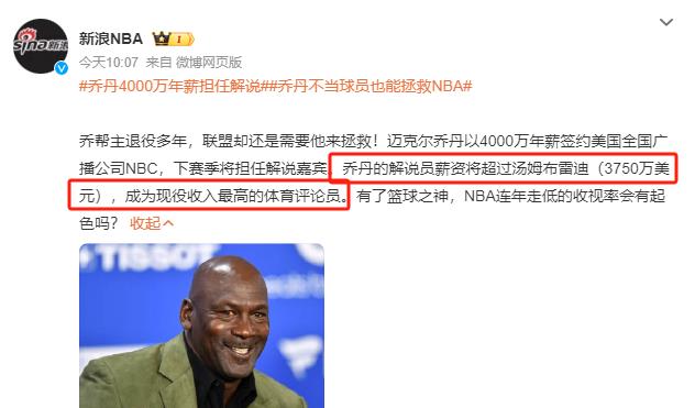 美国的广播公司或许也是看中这一点,希望借助乔丹的影响力,提振NBA近年下滑的收视率。