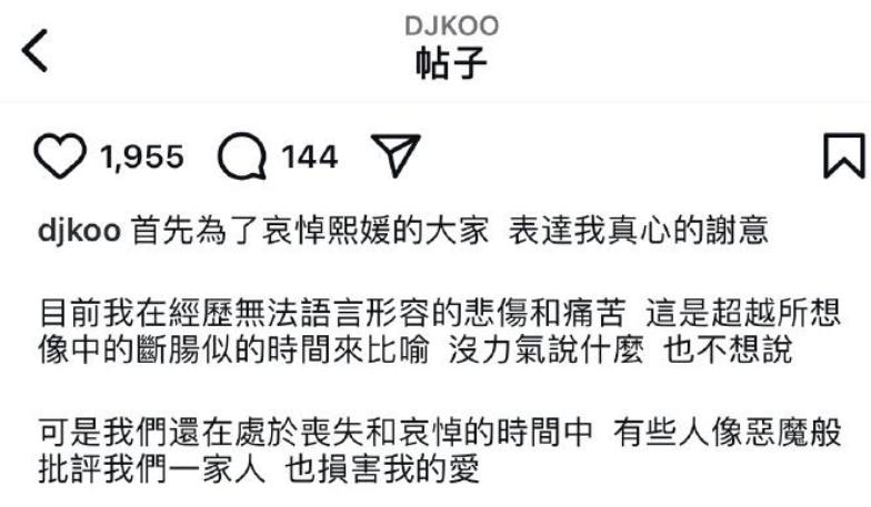 此次,从他的长篇大论不难看出,具俊晔如今已“清醒”,甚至要为了大S“保护”好她的家人。