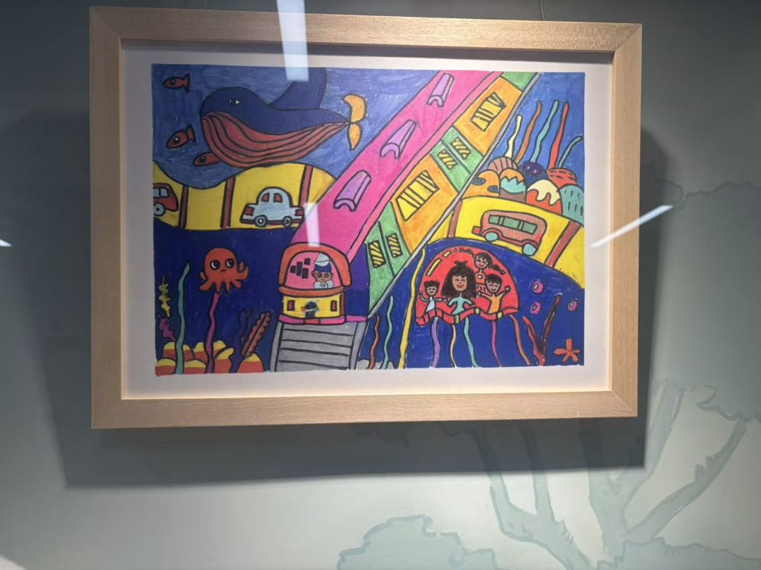 第五种,略带“小人之心”的揣度,就是这些画作并非真正出自小朋友之手,而是专人创作,假小朋友之名放进橱窗展览。倒不是怀疑地铁方面故意这么弄,而是一开始也想真正征集,但可能征集的情况不甚理想,事情又不能半途而废,只好专人上阵了。这种情况,自然没办法列出作者的名字了。果真这样的话,可就这有点啥啥了。但从画作来看,笔触下的那些童真,看着挺真切的。