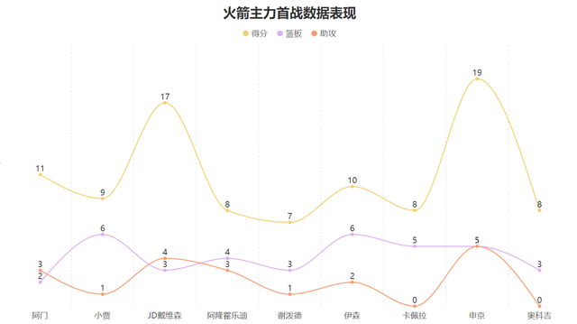 同时,申京此战的净效率也达到了46.2,这意味着当申京在场时火箭每百回合可以净胜对手老鹰46.2分之多,这个净效率在火箭全部出场球员中高居第一,正负值与净效率均位于第一也表明申京的在场对于火箭队的重要性。