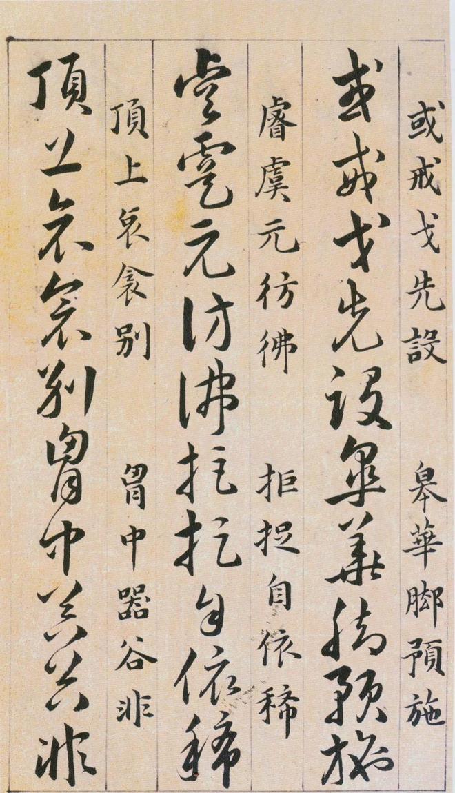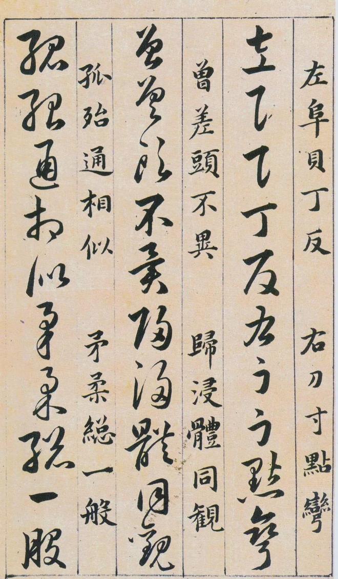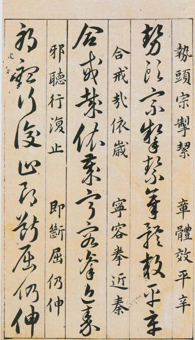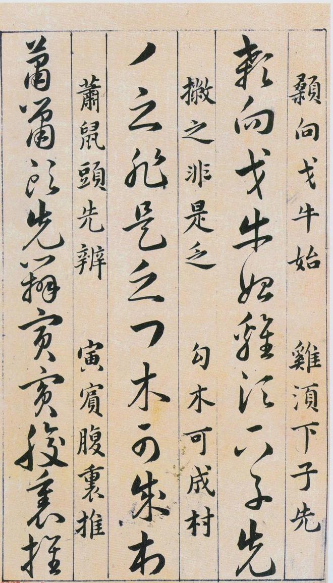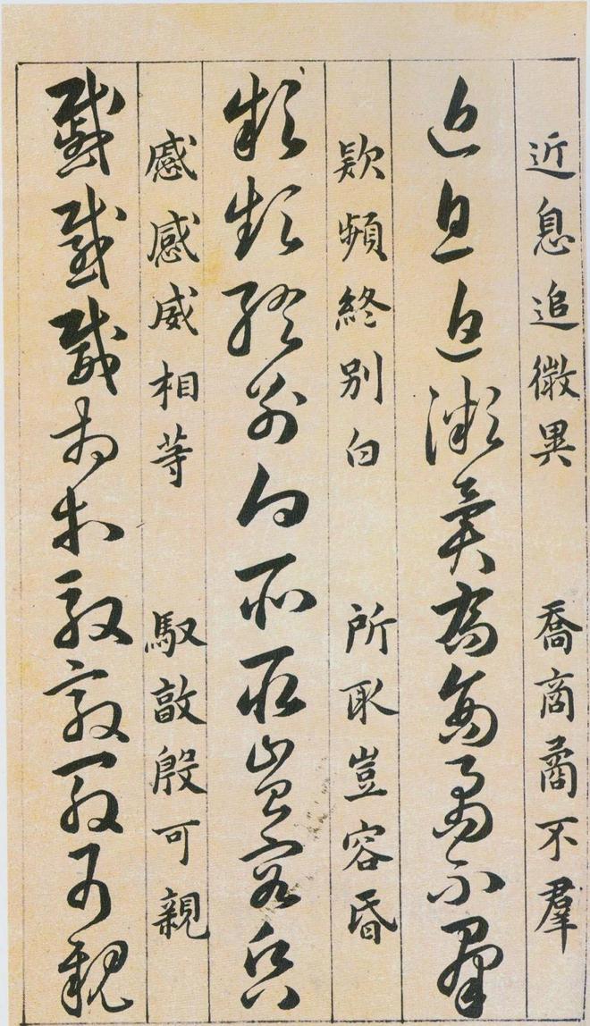 《草诀百韵歌》是明韩道亨于万历四十一年(1613年)书写的。《草诀百韵歌》是把比较通行的草字集中起来,找出它的结体和行笔中的某些规律,编成五字一句的韵文。例如把不易区别的字列在一起,指出差异之处,以便於记忆,第三韵“有点方为水,空挑即是言”,是指草写“水”字、“言”字的差异只在於“水”字有一点,而“言”字只空挑一笔;又如把某一草字的结构特点加以说明。