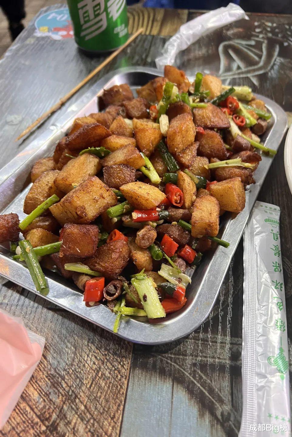 两家都卖炸土豆、炸饵块,有冰粉,还有“劣质”奶茶。据说臭味相投后来换老板儿了,除了卖这两样,还开始卖铜火锅。