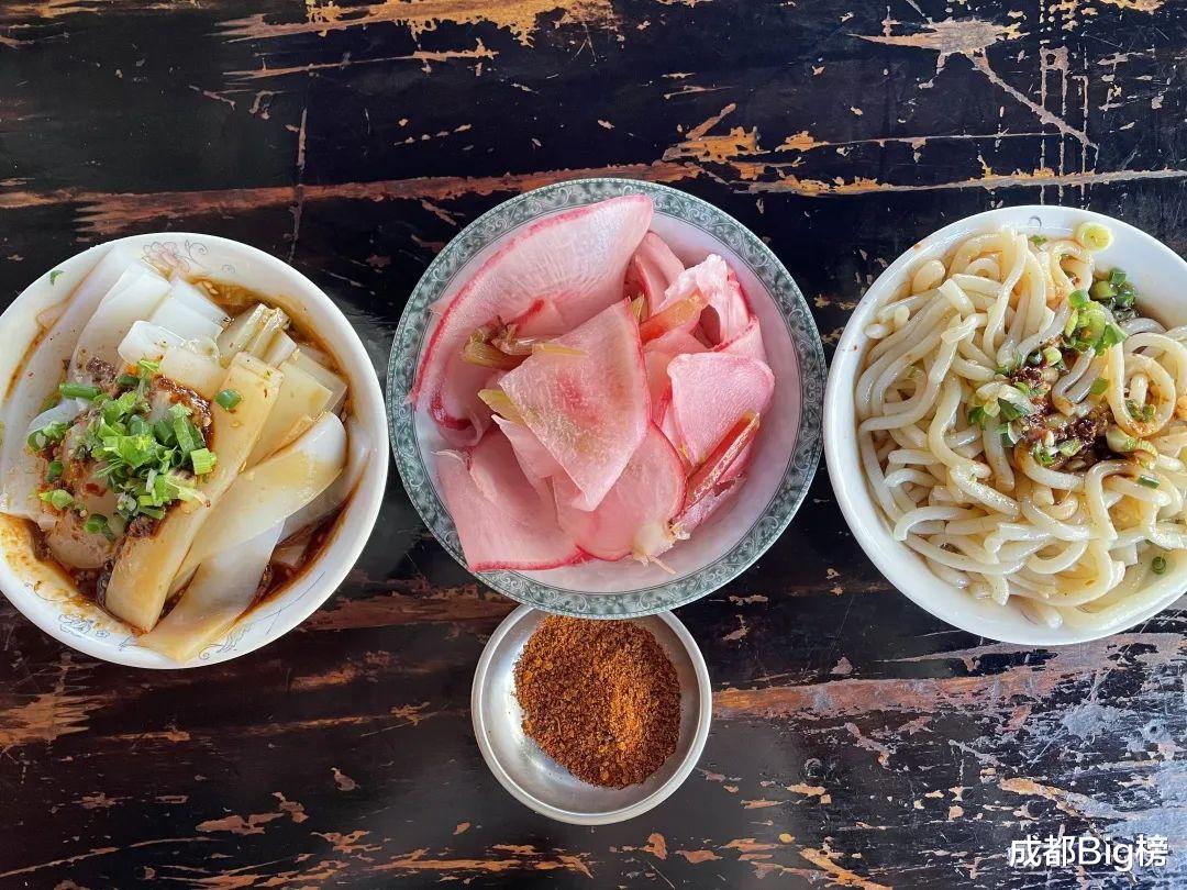 还有一个小学老师开的手摊凉粉,也是几角钱一份,用一张纸,把豌豆凉粉摊在上面,再刷酱。一手提塑料袋,一手拿纸包凉粉,乱七八糟吃一路,精精算准回家前吃完嘴巴擦干。