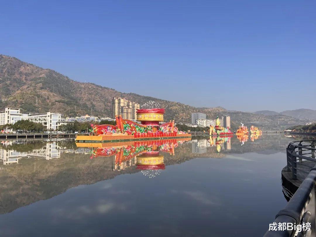8. 大概从2008年、2009年开始,每年过节,安宁河上都要搞灯会。米易的每条街、每个公园,只要能放得下的地方,都会摆灯。记得有一年,安宁河河中间搭起一个舞台,当时喊的:水幕灯会。