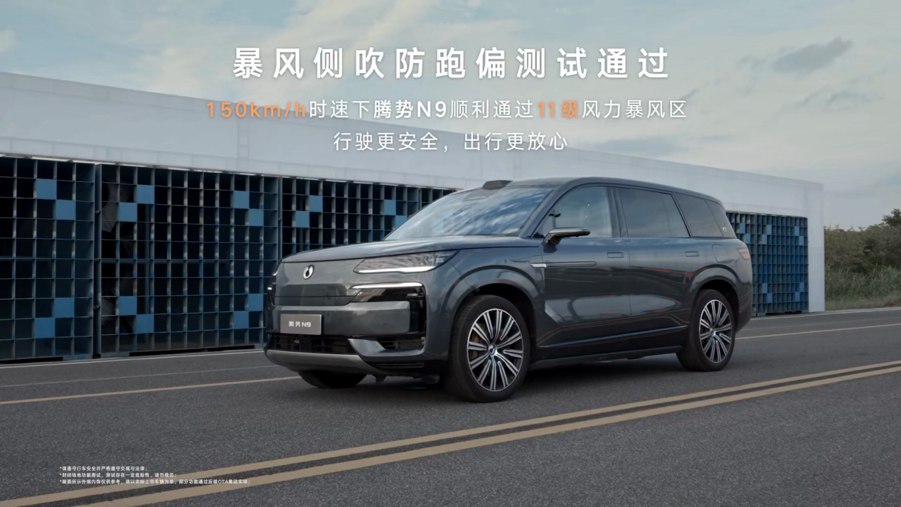 有人说,豪华车的标配是舒适、智能、动力。但腾势N9给出的答案是:安全才是最大的豪华。在日常开车中,你也许感受不到“横风稳定护航”在工作,但一旦遇到台风、强风的极端天气,它的存在可能就是守护全车人的底气。